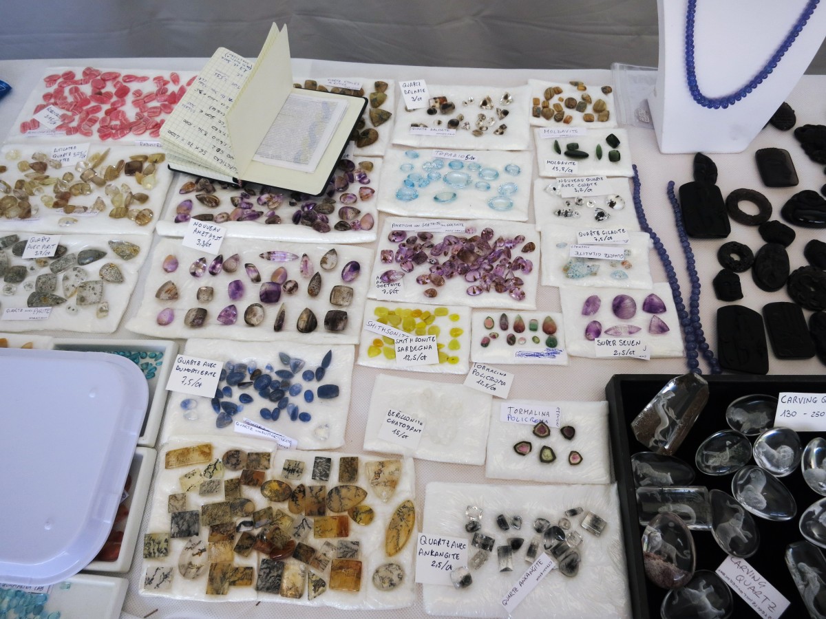 На этом фото цены на Пакистанский брусит одни из самых демократичных на выставке.