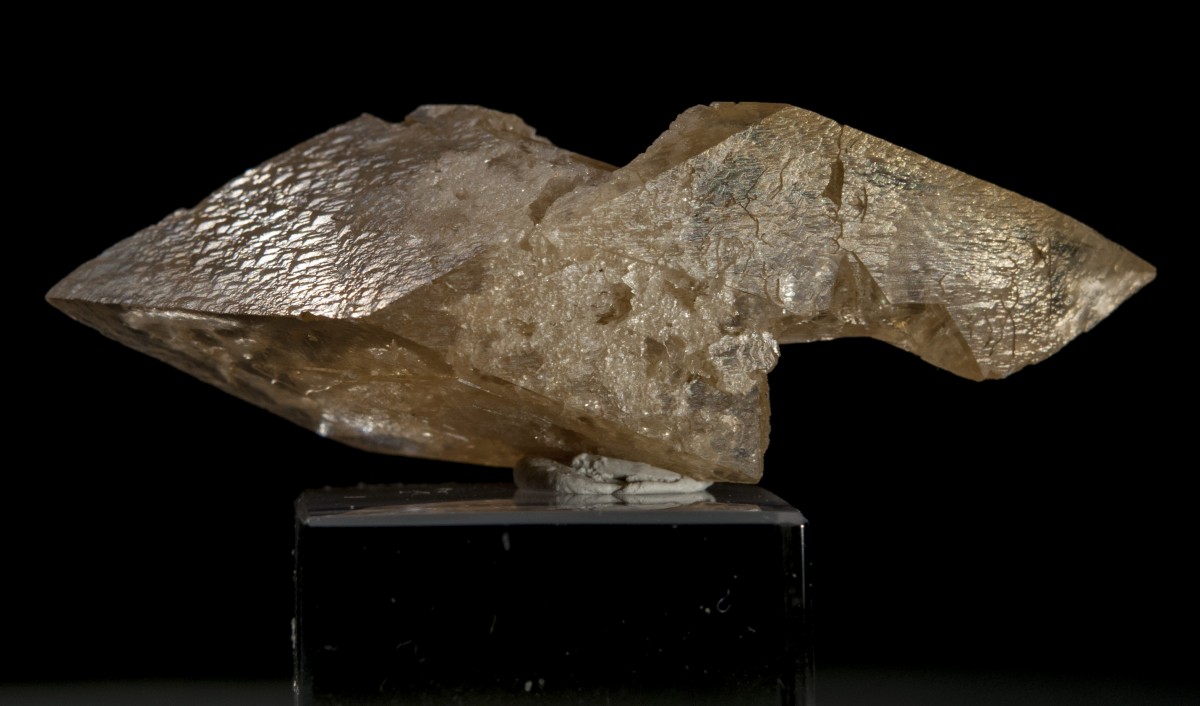 Первая находка! Ромбоэдрический кристалл кальцита приятного медового цвета. Совершенно не понятно, как он уцелел в осыпи..