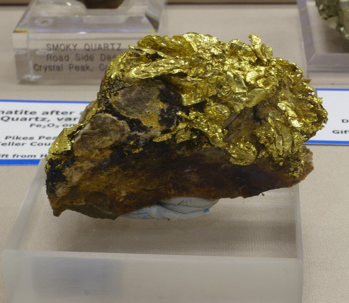 Крупное выделение листоватого золота в кварце. Smuggler Union Mine, Telluride Distr., San Miguel Co., Colorado, USA. (Название рудника тоже хорошее...)