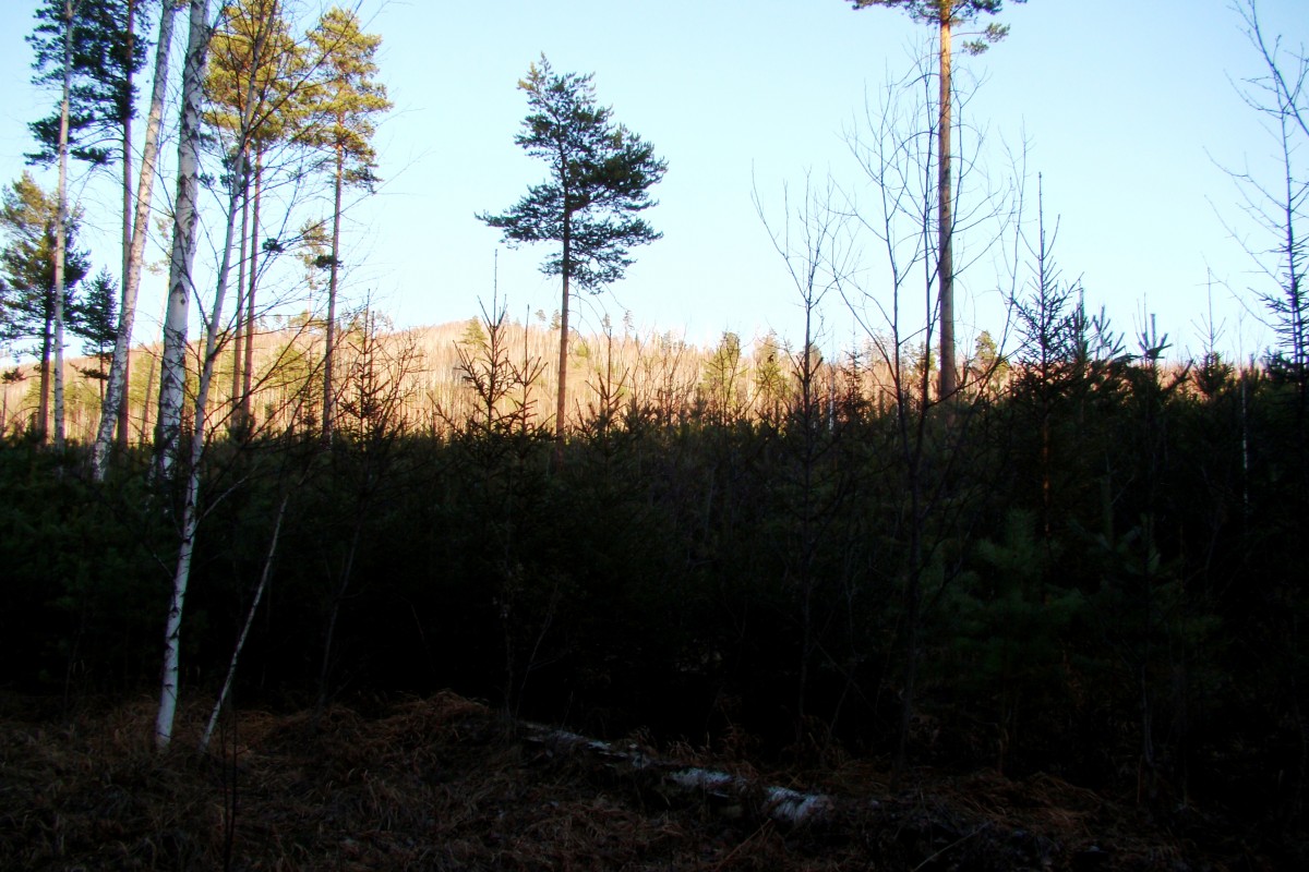 Лес в этом месте абсолютно прозрачный, хорошо видно возвышенности и можно ориентироваться по местоположению. Не то, что летом, когда ничего не видать. Хорошо видно г. Борзовочную. Ту, что по Коптеву - Дворникову.