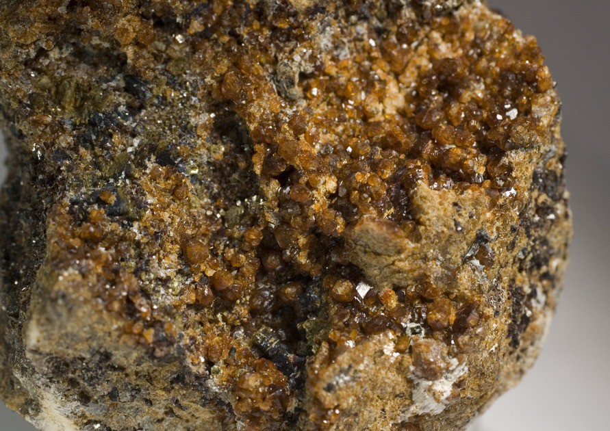 Кристаллы граната и кианита на выветрелой поверхности гнейсов. Гора Келес-Уайв.