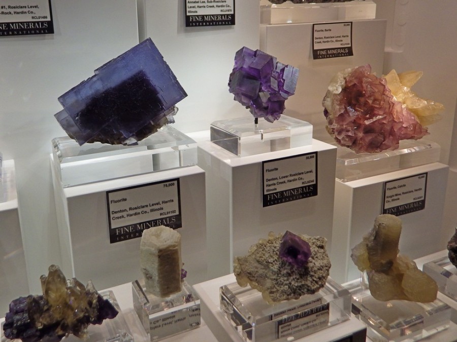 Одна из наиболее эффектных витрин с образцами флюорита.
